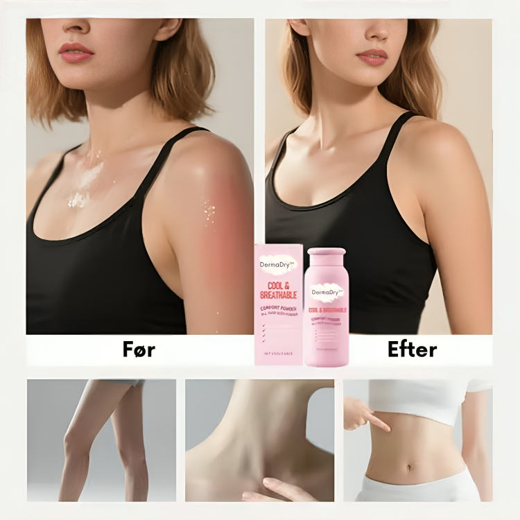 ✨ DermaDry™ eliminerer begge problemer. Det absorberes øjeblikkeligt med en silkeblød tekstur, der føles som om, der ikke er påført noget. Dit tøj forbliver rent, og du føler dig selvsikker.